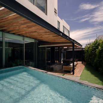 La remodelación integral que se llevó a cabo en el fraccionamiento Villa Verona, Zapopan, Jalisco. Donde se diseñó el área de terraza como un lugar de respiro para disfrutar en familia, con una alberca climatizada, sauna, regadera al aire libre y una sala de estar, logrando un ambiente ideal para relajarse. Se renovaron también cocina, el vestidor, los closets y el baño principal, incorporando recubrimientos de piedra para dar un toque elegante y moderno. La cocina se renovó con una cubierta y gabinetes en tonos oscuros que contrastan con la madera clara, creando un espacio acogedor y sofisticado.